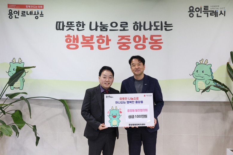 22일 처인구 중앙동 발전협의회와 중앙동 주민자치위원회는 어려운 이웃을 돕기 위해 성금을 기탁했다. 중앙동 발전협의회는 100만원, 중앙동 주민자치위원회도 이웃돕기 성금 100만원을 기탁했다.