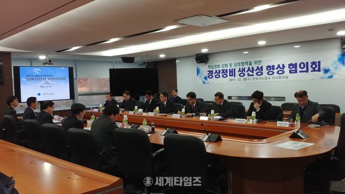 21일 가스공사에 따르면 이날 행사에는 가스공사 김영두 기술부사장과 가스기술공사 이석순 사장 등 양 기관 관계자들이 참석, ▲천연가스 설비 경상정비 생산성 제고 방안 ▲정비효율 향상을 위한 의사소통 강화 ▲전문 기술인력 양성 방안 등을 논의했다.