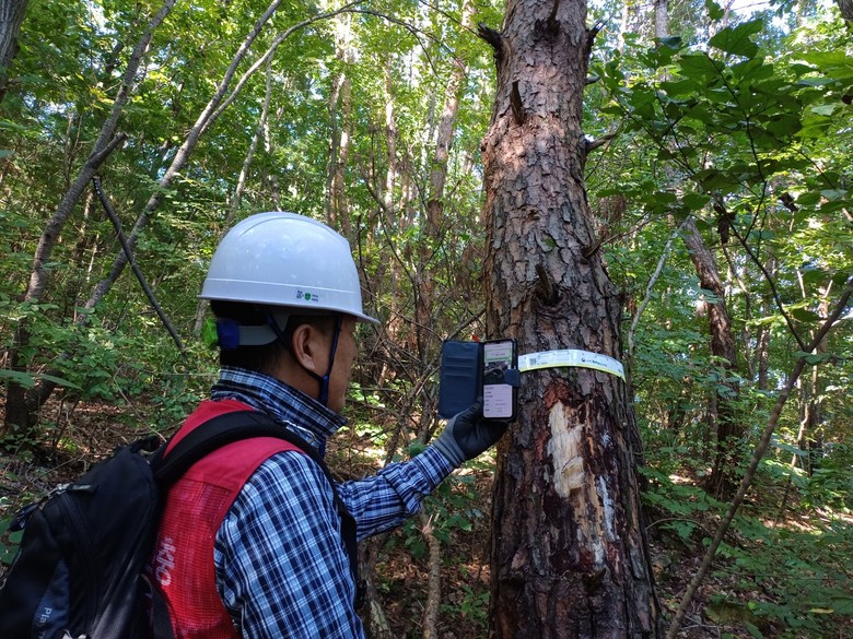 이 시스템은 산림청이 2020년부터 도입해 운영 중이며, 감염목과 감염 의심목에 대해 예찰 단계부터 QR코드 마킹 테이프를 부착하고, 이후 감염 진단 결과와 방제 정보를 등록함으로써 고사목에 대한 피해 와 방제 이력을 실시간으로 확인·추적 관리할 수 있도록 하고 있다.