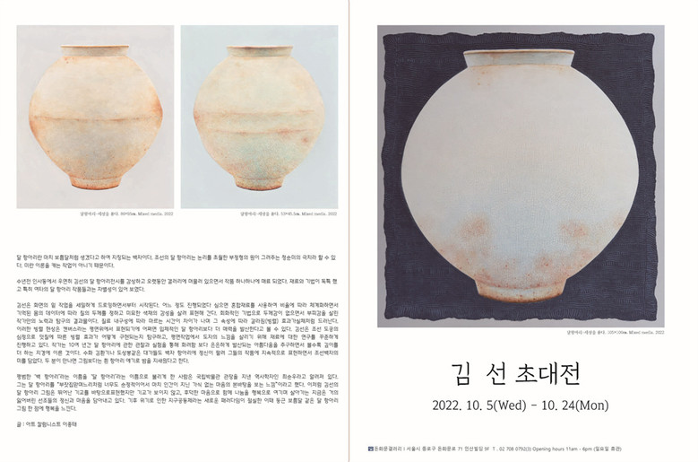 | ▲ 김선 작가 돈화문갤러리에서 _달항아리 세상을 품다_ 작품으로 전시 |