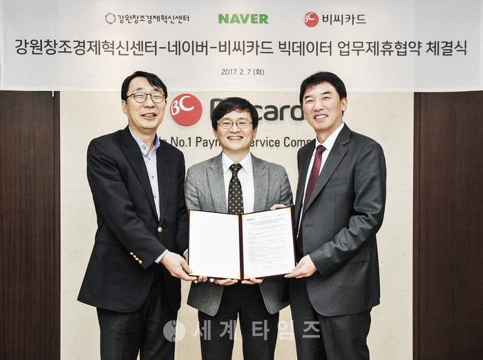 이번 MOU는 BC카드의 카드 소비 데이터와 네이버의 검색 데이터를 강원창조경제혁신센터에 제공하고, 이를 통해 빅데이터 기반 스타트업의 육성 및 지원을 목적으로 체결됐다.