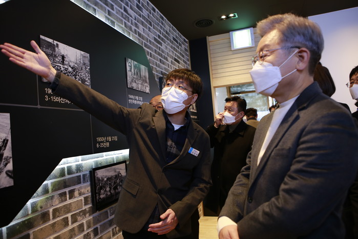 이 후보는 기념관 앞에 있는 표식 동판에 큰절을 올리기도 했다. 동판은 3·15 의거 때 마산 시민들이 처음 모인 자리를 표시한 것으로, 대한민국 민주주의의 역사가 시작된 곳이라는 표식이다. 이 후보의 큰절에 대해 민주당은 "민주주의 영령에 대한 위로와 감사의 뜻을 표하고 3·15 정신을 이어받아서 올바른 정치를 하겠다라는 취지"라고 설명했다.