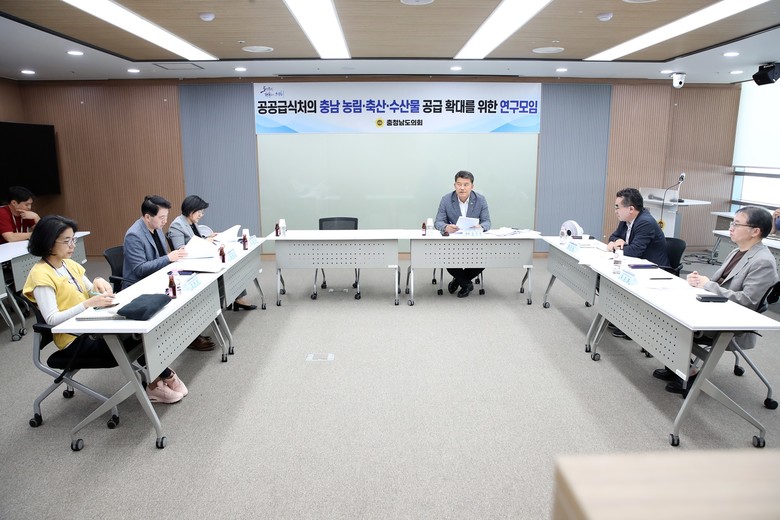 도의회 ‘공공급식처의 충남 농림‧축산‧수산물 공급 확대를 위한 연구모임(대표 김기서)’는 28일 의회 세미나실에서 발족식 및 1차 회의를 개최했다.
