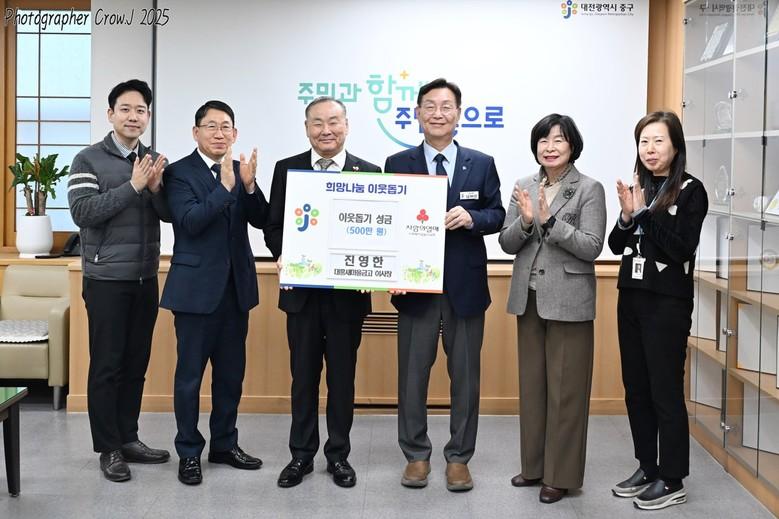 [중구 세계타임즈=이채봉 기자] 대전 중구는 지난 18일 대전 대흥새마을금고 진영한 이사장이 지역 내 어려운 이웃을 위해 성금 500만원을 기탁했다고 밝혔다.