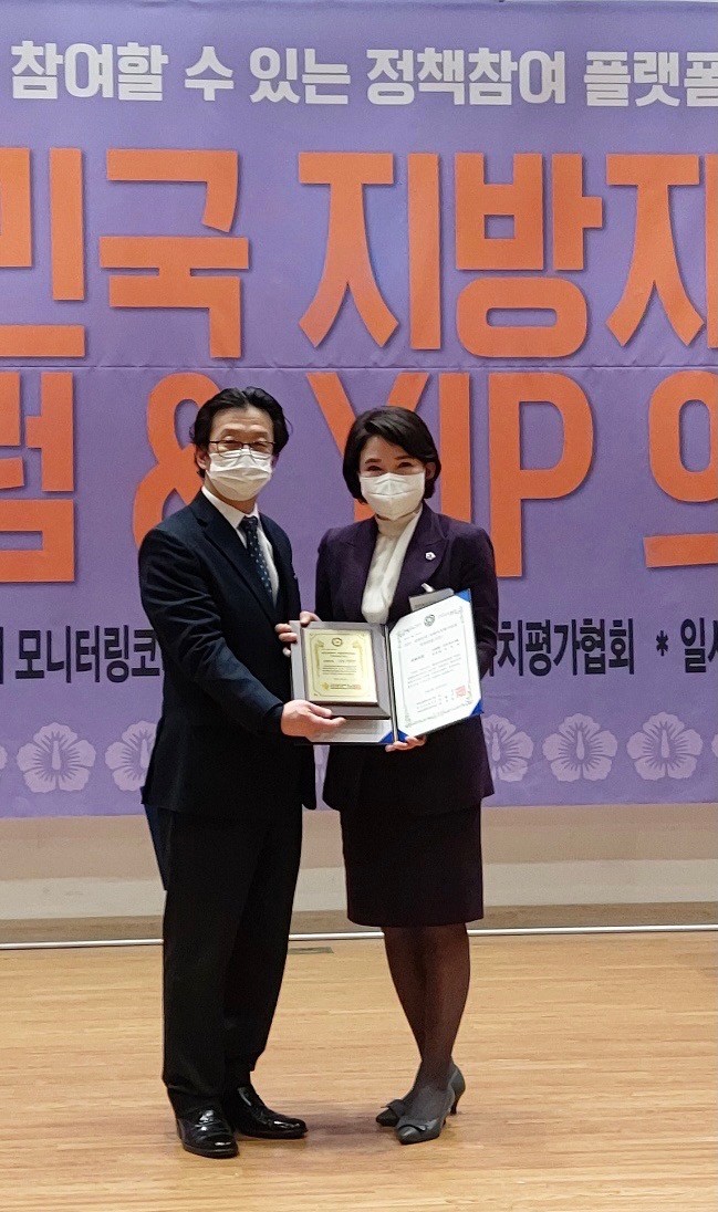 ‘지방자치평가 의정대상’은 여의도정책연구원에서 전국 광역의회의원, 기초의원 등을 대상으로 지방자치 활성화를 위한 주민행복 정책과 지역개선 활동에 기여한 공로를 평가해 시상한다.
