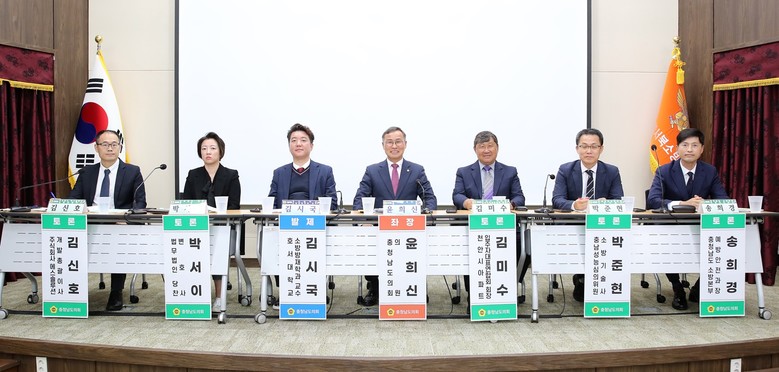이날 토론회는 도의회 윤희신 의원(태안1·국민의힘)이 좌장을, 김시국 호서대학교 소방방재학과 교수가 발제를 맡았다. 또한 김미수 천안시아파트 입주자대표연합회장, 박서이 법무법인 당찬 변호사, 박준현 충남성능심의위원 소방기술사, 김신호 ㈜에스솔루션 이사, 송희경 충남도 소방본부 예방안전과장이 토론자로 참여했다.