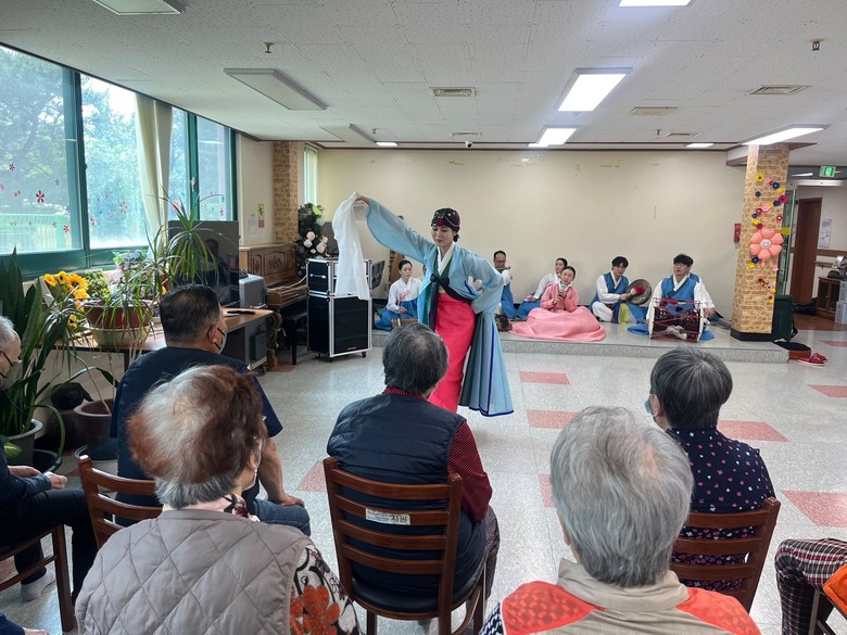 이 외에도 국악 관현악 연주곡 등 어르신들에게 친숙한 우리 소리로 어르신들의 흥을 돋우게 된다.