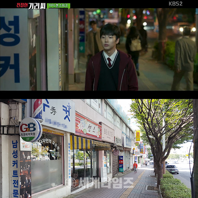 지난 9일 방송된 KBS2 '영화가 좋다'에서는 이제훈의 동생 '영재' 역을 맡은 성유빈이 '수컷 남성미용실' 앞을 걸어가고, 바로 뒤 이제훈은 '보떼 부산연산시장점' 앞에서 성유빈을 지켜보는 장면이 공개됐다.