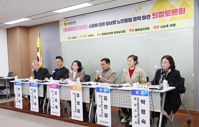 신순옥 의원은 “초고령사회로의 진입에 따른 인구구조 변화는 노인돌봄에 새로운 혁신을 요구하고 있다”며 “이번 토론회가 충남의 특성과 여건을 반영한 실효성 있는 노인돌봄 정책의 이정표가 되길 바란다”고 밝혔다.