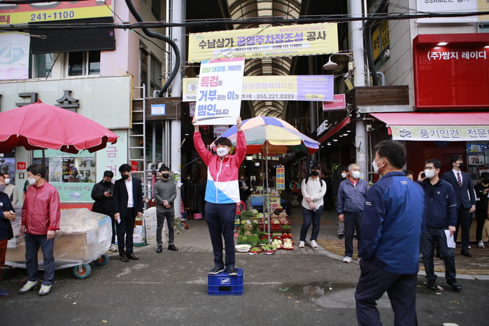 이 대표는 이날 "민주주의 위기때마다 나서주셨던 마산, 창원시민들께서 대장동 게이트 특검을 관철시킬 수 있게 힘을 모아달라"고 호소했다.