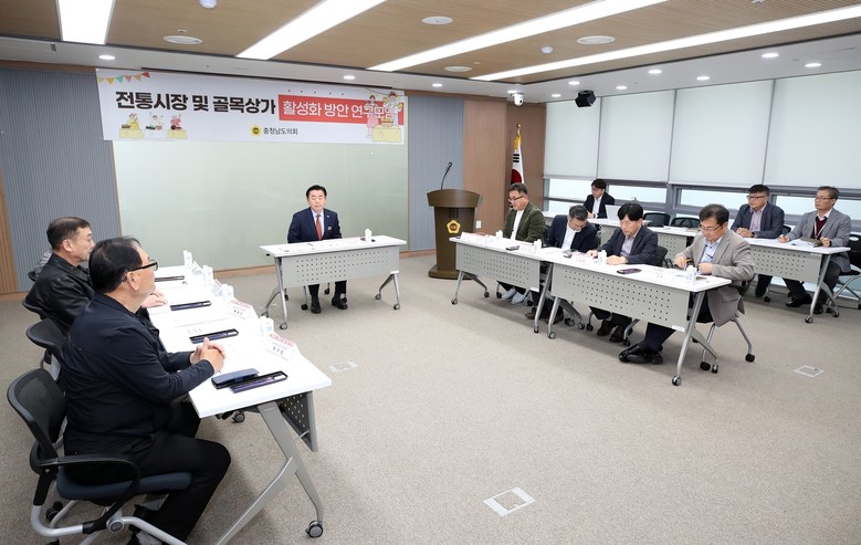 이날 회의에는 연구모임 대표인 이종화 의원(홍성2·국민의힘)과 전통시장 상인회 회장, 전문가 등 10명이 참여했다.