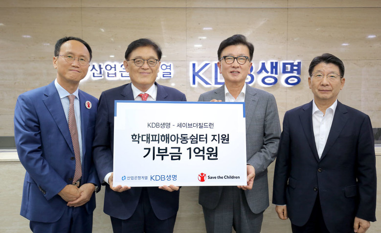 기부금 전달식은 KDB생명 임승태 대표와 김희태 수석부사장, 세이브더칠드런 정태영 총장과 김희권 대외협력부문장이 참석한 가운데 KDB생명타워에서 진행됐다.