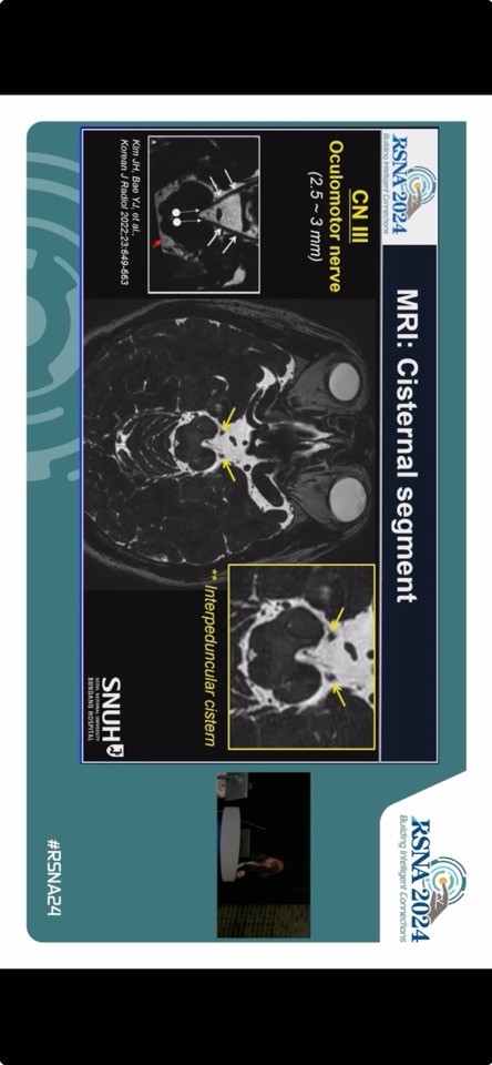 덧붙여 3D 고해상도 T2, Proton density, 조영증강 T1 강조 영상 등을 활용한 진단법과 최신 연구 결과를 공유하며 뇌간 병변, 신경근접합부 이상, 외안근 질환 등 다양한 임상 사례를 제시해 그 효용성을 보여주었다. 최근 국내 영상의학의 발전 덕분에 세계적으로 우수한 수준의 뇌신경 영상을 제시했다는 호평을 받았다.