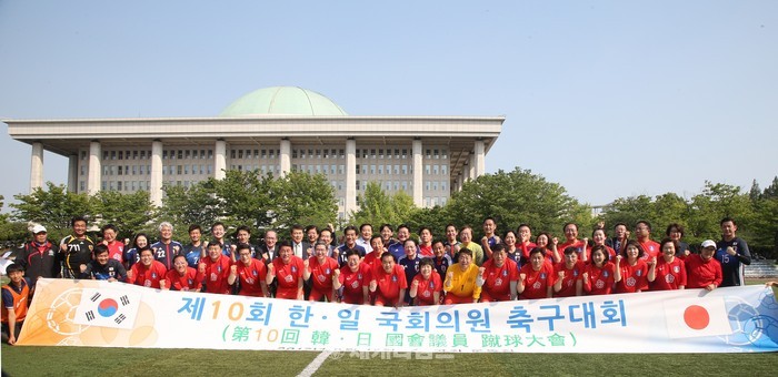 [세계타임즈 이채봉 기자]정세균 국회의장이 6월17일 오후 국회운동장에서 열린 제 10회 한일 국회의원 축구대회에 참석하였다. 정 의장은 "한일 국회의원 축구대회가 경색된 양국관계 해소를 위한 촉매제가 되길 바란다" 고 말했다.