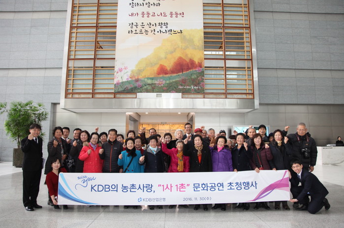 이에 산업은행 이동걸 회장은 “이번 행사가 문화적 혜택이 부족한 농촌 어르신들께 유익한 시간이 되길 바라며, 앞으로도 이러한 사회공헌활동을 지속적으로 추진해 나갈 것”이라고 밝혔다.
