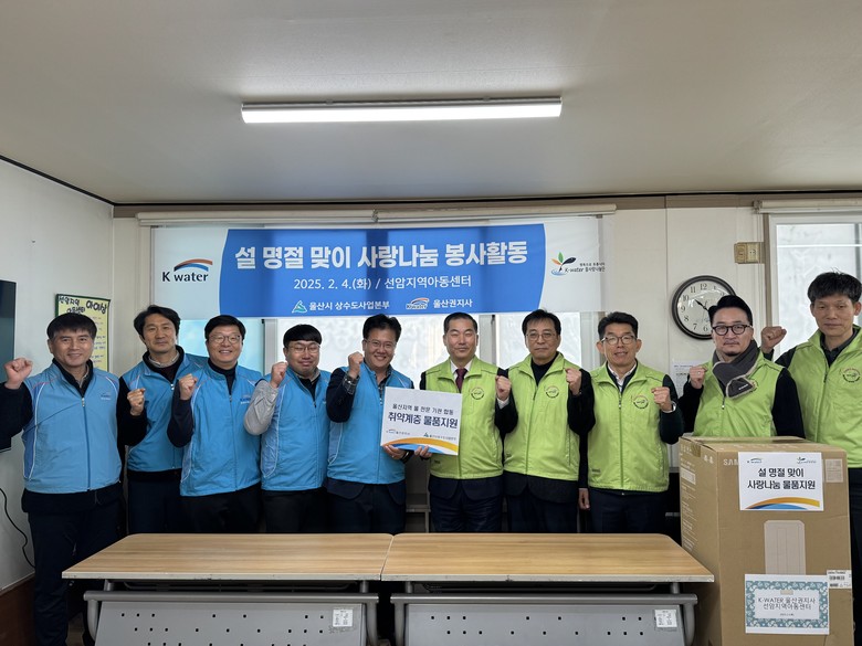 지난해에 이어 올해도 공동으로 진행하는 이날 나눔 활동은 울산시상수도사업본부와 한국수자원공사 울산권지사 직원 10여 명이 방문해 지역 아동들에게 학습 효율을 높일 수 있는 냉난방기(에어컨)를 지원한다.