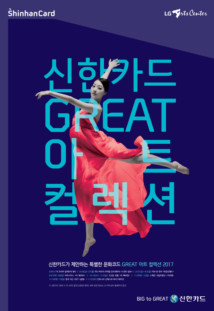 ‘GREAT 아트 컬렉션’은 다양한 문화 공연 가운데 희소성이 높고 우수한 작품을 발굴해 소개하는 신한카드의 공연 문화마케팅 브랜드다.