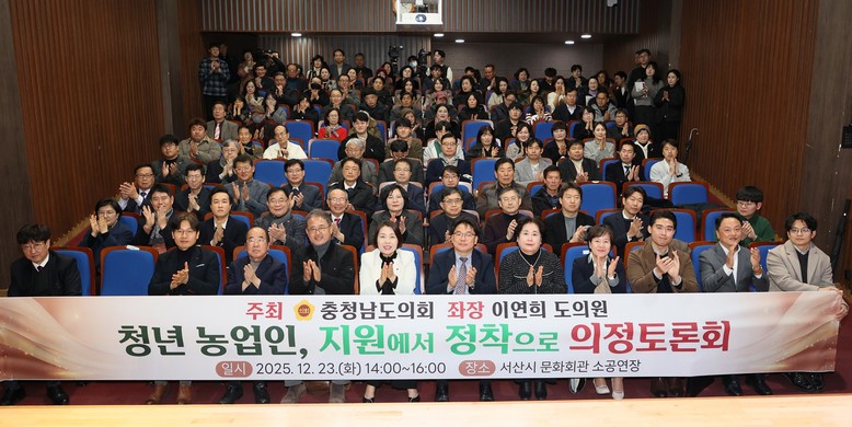 도의회는 23일 서산시 문화회관 소공연장에서 ‘청년농업인, 지원에서 정착으로’를 주제로 토론회를 개최했다. 이연희 의원(서산2·국민의힘)이 좌장을 맡았으며, 연암대학교 채상헌 교수가 주제 발표를 진행했다. 또한 농축산 분야 실무 국장, 금융 전문가, 청년농업인 등이 토론자로 참여해 현장의 현실과 제도 개선 방안을 폭넓게 논의했다.