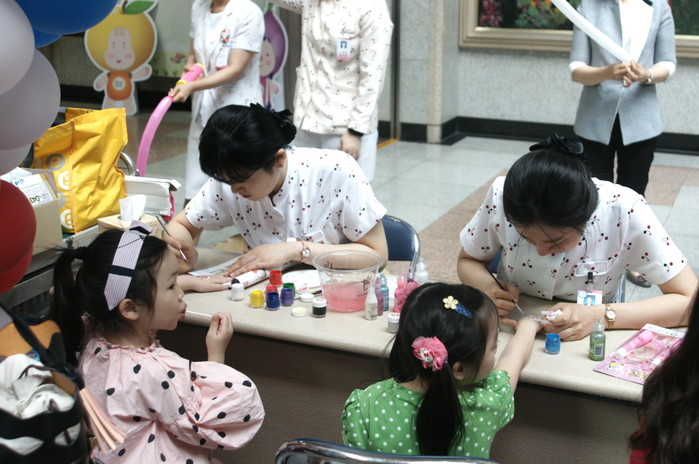간호부는 오전 10시부터 요술풍선으로 1층 로비 행사장 중앙에서 강아지, 칼, 꽃 등 아이들이 좋아하는 모양의 풍선아트 작품을 만든다. 또 어린이 ‘예쁜 얼굴 만들기’ 코너에서는 얼굴과 손에 페이스페인팅을 함께 그리고 병실에는 백설공주로 분장한 간호사가 직접 병실을 돌며 입원 중인 환아에게 선물을 전달해 웃음과 감동의 시간을 함께 나눌 계획이다.