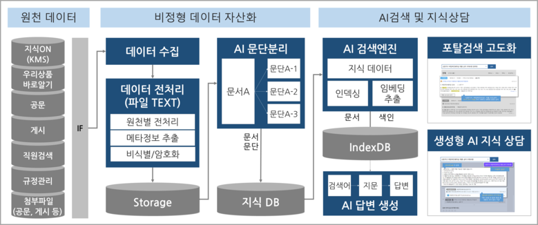 특히 기존 생성형 AI의 단점인 *환각현상을 보완하기 위해 상세 문단까지 자연어 검색이 가능한 AI 시스템을 구축하고, 이를 통해 생성형 AI 모델이 검색 결과를 참조해 진실성 높은 답변을 생성할 수 있게 했다.