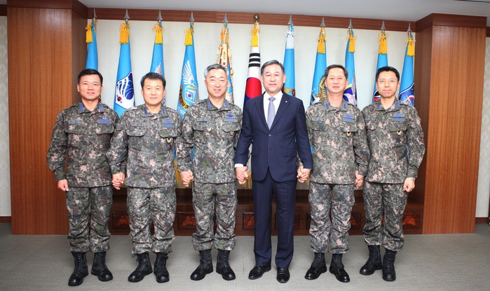 | ▲ 부영그룹 제주부영호텔 & 리조트 이용곤 대표는 이중근 회장을 대신해 이날 오전 충남 계룡시 공군본부 참모총장 접견실에서 이왕근 대장(공군 참모총장)을 만나 1억원의 기부금을 전달했다. |