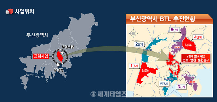 부산시는 2011년 하수관로정비 사업 1단계 감전분구를 기점으로 마지막 7단계인 전포·범천·문현분구까지 사업을 진행해왔다. 이미 1·3·4·5 단계 사업에 참여한 롯데건설이 마지막 7단계도 우선협상대상자로 선정됐다.