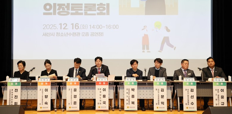 토론회는 이용국 의원(서산2·국민의힘)이 좌장을 맡아 진행했으며, 윤경준 교수(배재대학교 글로벌비즈니스학과)와 이향숙 교수(인천대학교 동북아물류대학원)가 주제 발표를 통해 소상공인의 ‘이중위기’ 구조와 지자체의 체계적 지원방안을 제시했다.