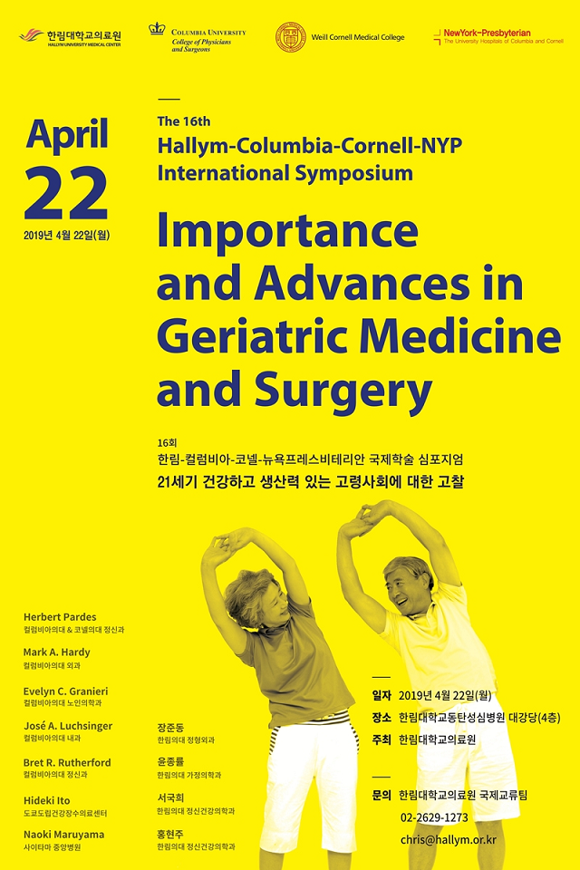 한림대학교의료원은 “고령사회의 이슈는 세계적 문제이자 미래사회의 중요한 도전적 과제”라며 “고령사회를 주제로 한 이번 심포지엄은 학문적 발전뿐 아니라 한국사회의 건강한 고령화 대책까지 바라볼 수 있는 학술 모임이 될 것”이라고 말했다.