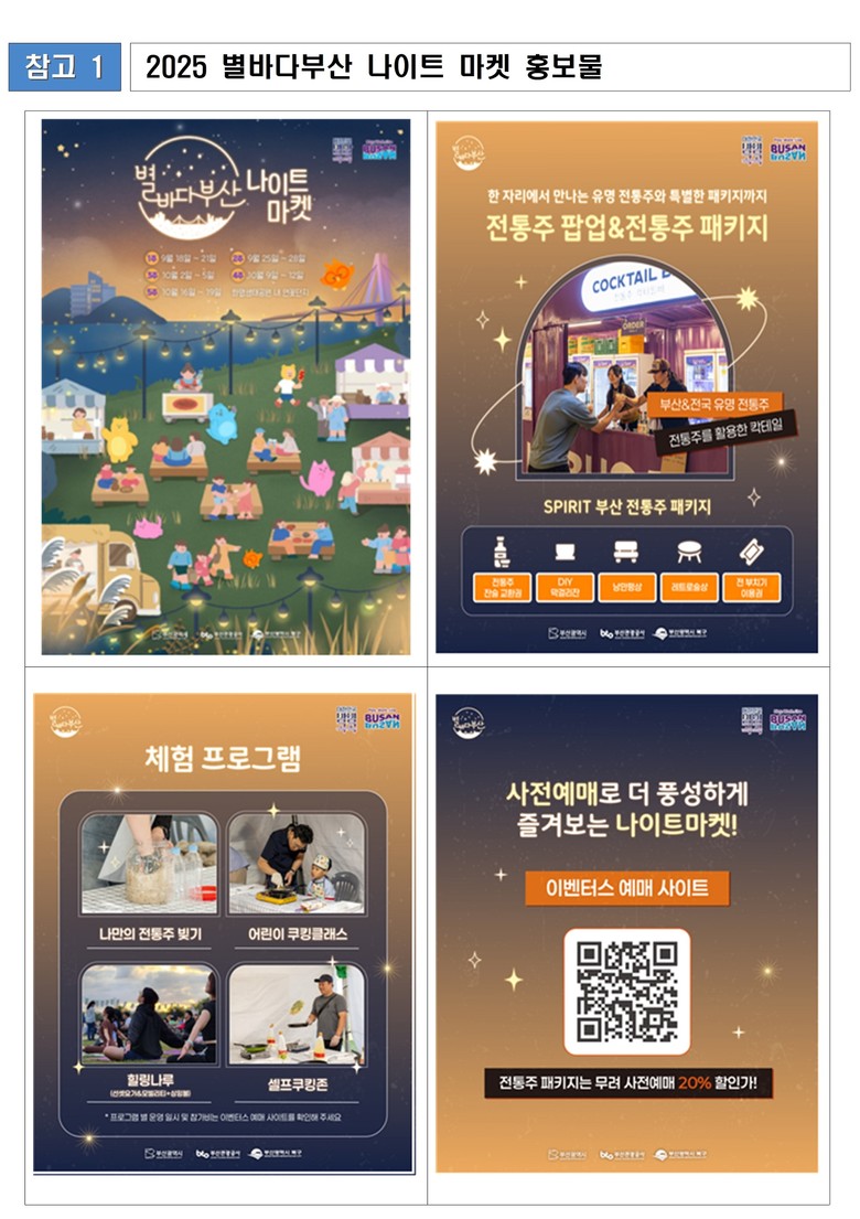 - (주요내용) 부산 전통주 팝업 스토어, 체험 프로그램 등 야간 장터 운영