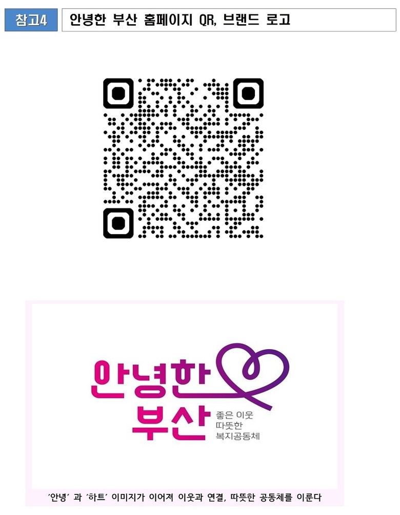 한편, '안녕한 부산' 브랜드 로고는 '안녕'과 '하트' 모양이 이어져 이웃과 연결되는 복지 공동체를 의미한다.