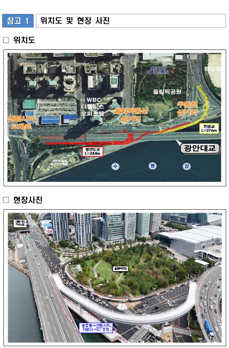 한편, '광안대교 접속도로 연결공사'의 공정률은 87퍼센트(%)로 올해(2025년) 연말 준공(개통) 예정이다.
