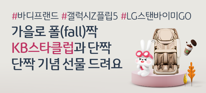 이번 이벤트는 KB스타클럽 서비스를 최초 등록한 만 14세 이상의 개인 고객을 대상으로 진행된다. KB스타클럽 서비스를 등록하고 이벤트에 응모한 고객 중 추첨을 통해 ▲2,000명에게 스타벅스 아메리카노 모바일 상품권 1매 ▲100명에게 신세계 이마트 상품권 1만원권 3매 ▲2명에게 LG 스탠바이미 Go ▲2명에게 갤럭시 Z Flip 5 256GB ▲1명에게 바디프랜드 레그넘 오트베이지를 제공한다.