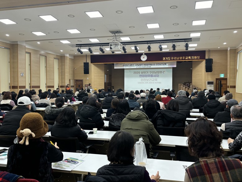 [남양주시 세계타임즈=송민수 기자] 경기도구리남양주교육지원청(교육장 서은경)은 관내 공·사립학교 및 교육기관 소속 현업업무종사자 1,600여 명을 대상으로 「2026년 상반기 안전보건교육(집체교육)」을 오는 1월 22일부터 2월 5일까지 총 4회에 걸쳐 실시한다.