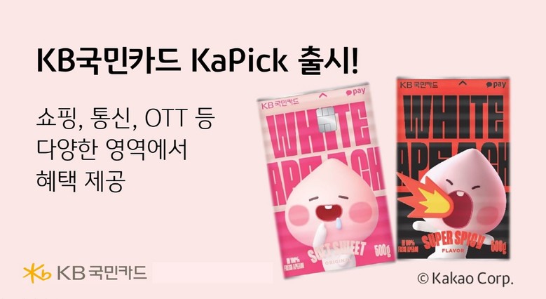 ‘KB국민카드 KaPick’은 러피치 디자인과 함께 다양한 가맹점에서 높은 할인 혜택을 자랑하는 특화 카드 상품으로 온/오프라인 쇼핑과 통신, OTT, 영화 등 일상 생활 영역까지 아우르는 폭넓은 혜택을 제공하는 것이 특징이다.