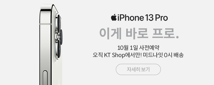 iPhone 13 라인업은 10월 1일부터 사전 주문을 할 수 있으며, 10월 8일부터 개통이 가능하다. 자세한 내용은 www.kt.com에서 참조하십시오.