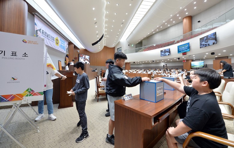 태안 화동초등학교 학생들은 의장 선거에 출마한 학생들의 정견 발표를 들은 후 투표를 통해 의장을 선출하는 등 의정활동을 체험했다.