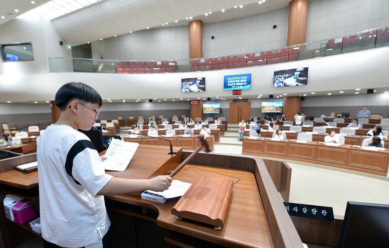 이날 학생들은 ‘책 읽기를 생활화하자’, ‘강아지를 유기하지 말자’는 내용으로 2분 발언을 진행하고, ‘교내 휴대전화 사용에 관한 조례안’과 ‘등교 시간을 늦추는 것에 관한 조례안’ 2건을 발의했다. 이들은 조례안 처리 과정에서 찬·반 토론을 통해 의견을 개진하고, 도민들을 위한 정책이 만들어지는 과정을 배웠다.