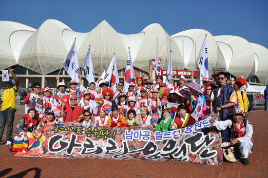 | ▲남아공월드컵 당시 아리랑 응원단 단체사진. <사진제공/아리랑응원단> |