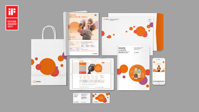 ‘한화생명 Visual Identity(VI) 시스템’은 고객들과 평생 함께하는 ‘따뜻한 동반자’ 라는 브랜드 철학을 바탕으로 그들의 다양한 삶의 가치를 모티프로 활용해 표현했다.