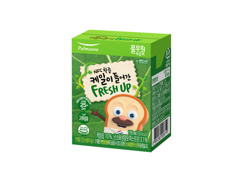 ‘NFC착즙 케일이 들어간 프레시업’은 식품의약품안전처 ‘어린이 기호식품 품질인증’을 받은 제품으로 HACCP(위해요소중점관리기준) 시설에서 안전하게 제조하여 안심하고 음용할 수 있다.
