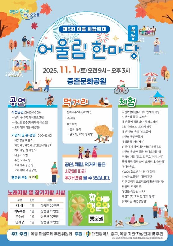 박동천 위원장은 “선선한 가을, 주민들이 서로 소통하고 함께 어울리는 소중한 시간이 되길 바라는 마음으로 열심히 준비하고 있다”며, “주민 모두가 함께 참여한 이번 축제에 많은 관심과 참여를 부탁드린다”라고 말했다.