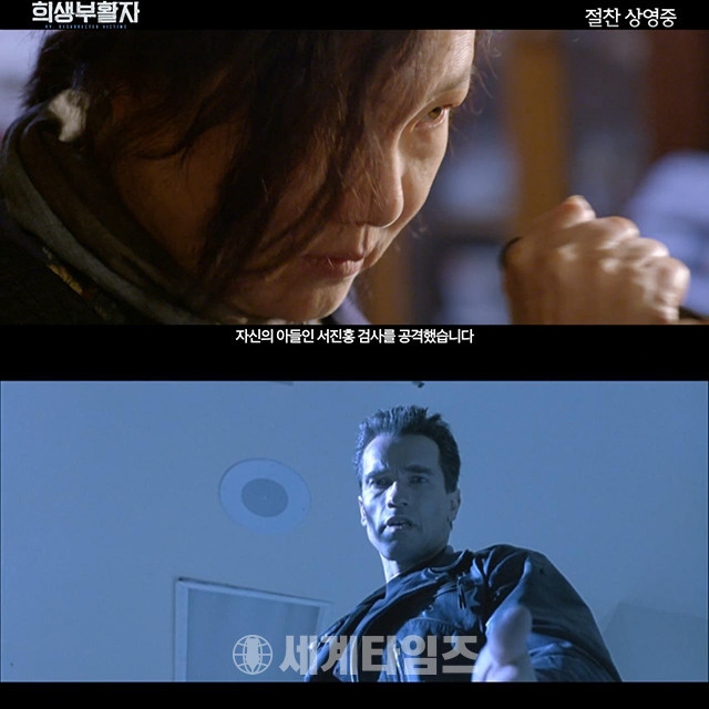 영화 '희생부활자'에서 김해숙이 김래원에게 칼을 휘두르는 장면과 영화 '터미네이터 2'에서 아놀드 슈왈제네거가 린다 해밀턴에게 손을 건네는 장면이 화제가 되고 있다.