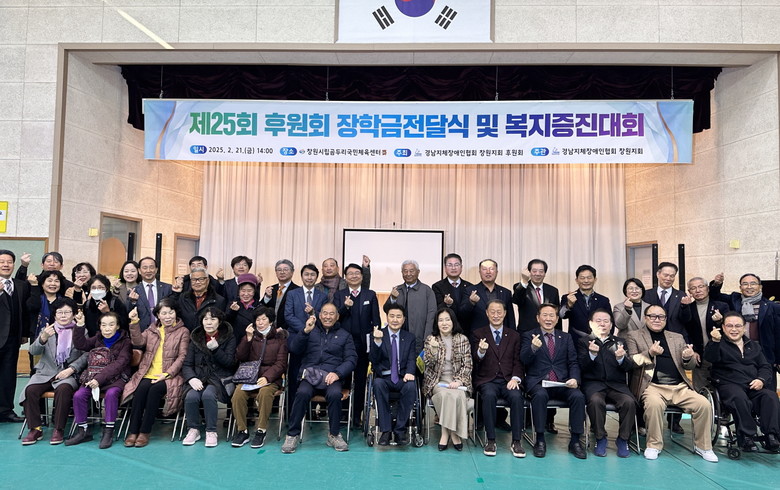 [창원시 세계타임즈=최성룡 기자] 창원특례시(시장 홍남표)는 지난 21일 창원시립곰두리체육관에서 경남지체장애인협회창원시창원지회 제25회 후원회 장학금 전달식 및 복지증진대회를 단체 회원과 그 가족 등 300여 명이 참석한 가운데 성황리에 개최했다고 밝혔다.