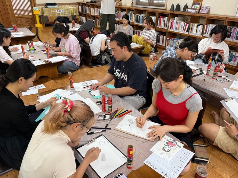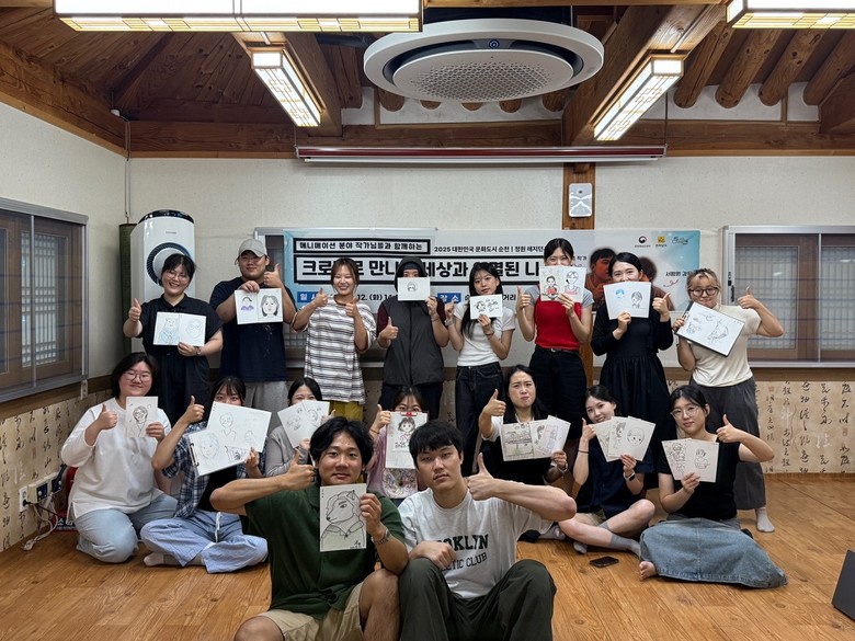 이번 프로그램은 지난 12일 한옥글방에서 애니메이션에 관심 있는 청년 20명이 참여해 자신의 얼굴을 개성 있는 캐릭터로 재해석하고 순천의 풍경과 인물을 크로키로 표현하는 창작프로젝트다. 작가들은 참가자의 작품을 세밀하게 지도하고 창작 노하우를 함께 나눴다.