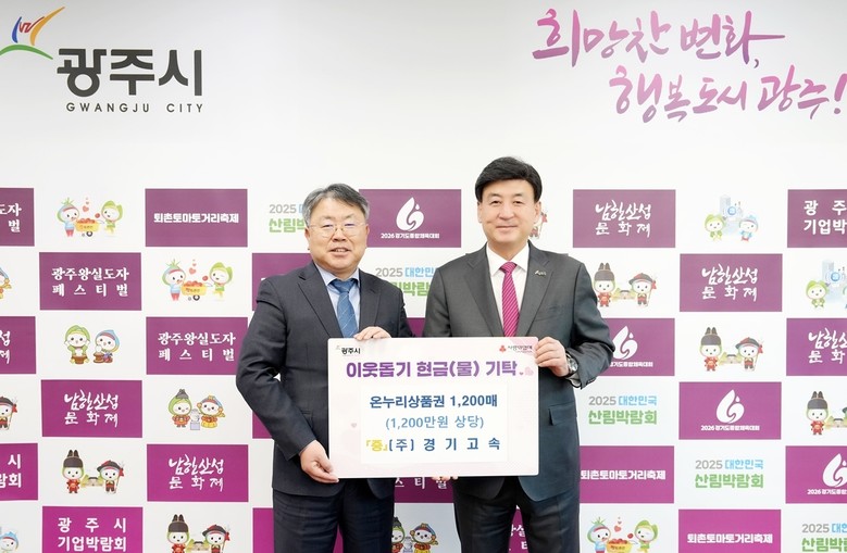 이날 ㈜경기고속은 온누리상품권 1만 원권 1천200매(1천200만 원 상당), 광주시충청향우연합회에서는 백미 10㎏ 19포(58만 원 상당), 경기광주전기공사협의회는 성금 300만 원을 각각 전달했다.