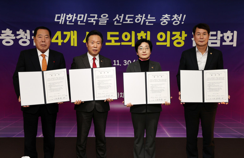 충청권 4개 시·도의회는 11월 30일 세종시의회 대회의실에서 충청권 특별지방자치단체 ‘충청권 초광역의회’ 구성을 위한 규약(안)에 전격 합의했다.