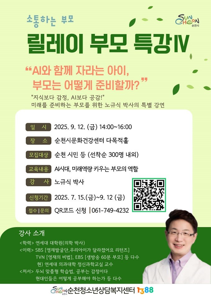 시 관계자는 “AI 시대에는 부모의 교육법이 달라져야 한다”며 “이번 특강이 자녀의 잠재력을 키우고 부모와 자녀가 함께 성장하는 계기가 되길 바란다”고 전했다.