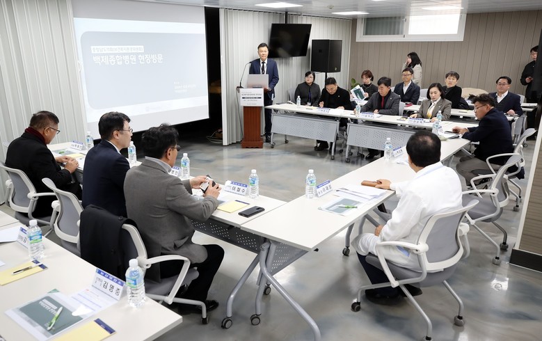 보건복지환경위원회는 먼저 백제종합병원에 방문해 지역 필수의료 인프라와 응급의료 대응체계를 점검하고 향후 지원 방안을 논의했다. 이번 현장 방문은 충남 서남부권의 응급의료·필수의료 제공 핵심 기관인 백제종합병원의 운영 실태, 병상 및 인력 현황, 주요 현안 등을 직접 확인하기 위해 마련됐다.