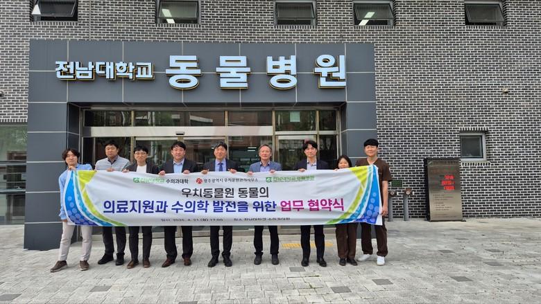 [광주 세계타임즈=손권일 기자] 광주광역시 우치공원관리사무소와 전남대학교 수의과대학, 전남대학교동물병원은 지난 21일 오후 전남대 수의과대학에서 ‘동물복지 향상 및 수의학 발전을 위한 업무협약’을 체결했다.