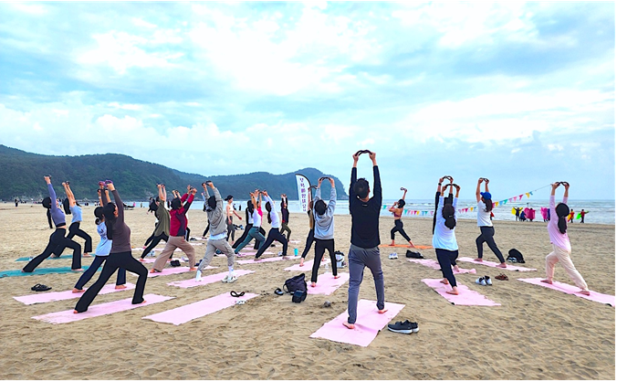 ◈ 해양치유 관광 프로그램 4종 ▲해변요가 ▲선셋 필라테스 ▲스웻 비치 ▲오션 러닝 중심으로 운영… 특별 프로그램으로, 6월 중 ▲사운드 워킹 ▲요트 리트릿도 선보여